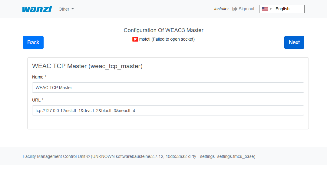 The following screen depends on the settings previously selected. If GalaxyGate-W3 device type has been selected, specify the